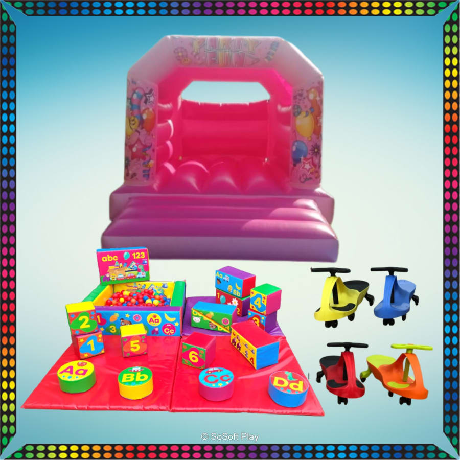 Within this package there is the Pink Celebration Bouncy Castle, suitable for children up to 1.2 meters tall or 10 years of age, great for those older children who want to attend your party as well. Don't forget the super fun classic soft play, situated on a large padded mat alongside the classic ball pit filled with commercial grade balls for double the fun. All topped off with the amazing didicars, let the kids zoom around and have all the fun in the world.