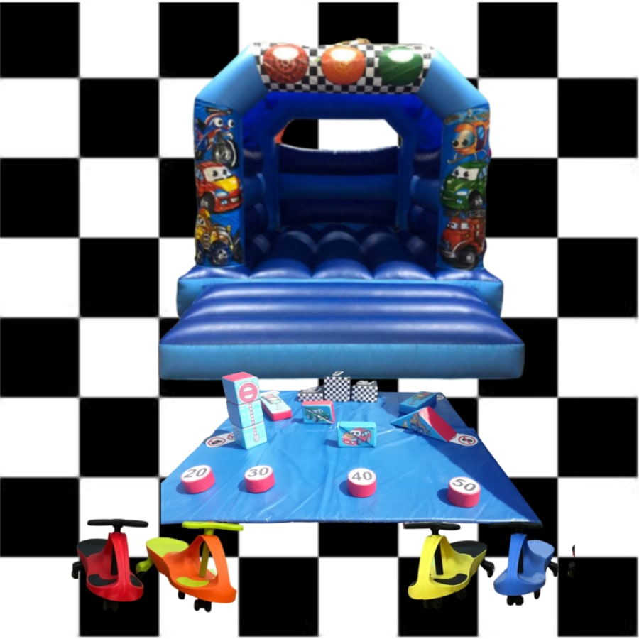 Its arrived, the traffic economy party package is here, suited to both boys and girls, what more do you need from a party. With its colourfulchoice of the amazing Traffic Bouncy Castle or Traffic Combi Castle Blue & Red (+£15), as well as the matching car soft play set, all topped with didicars for a fun filled party.