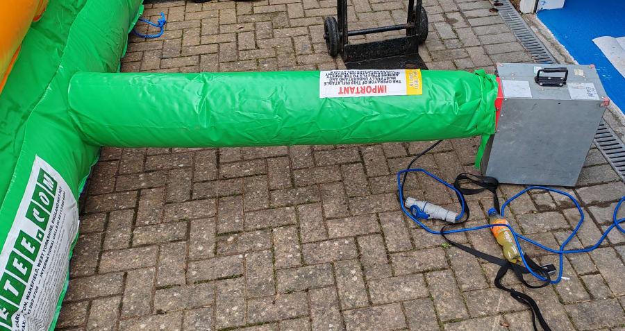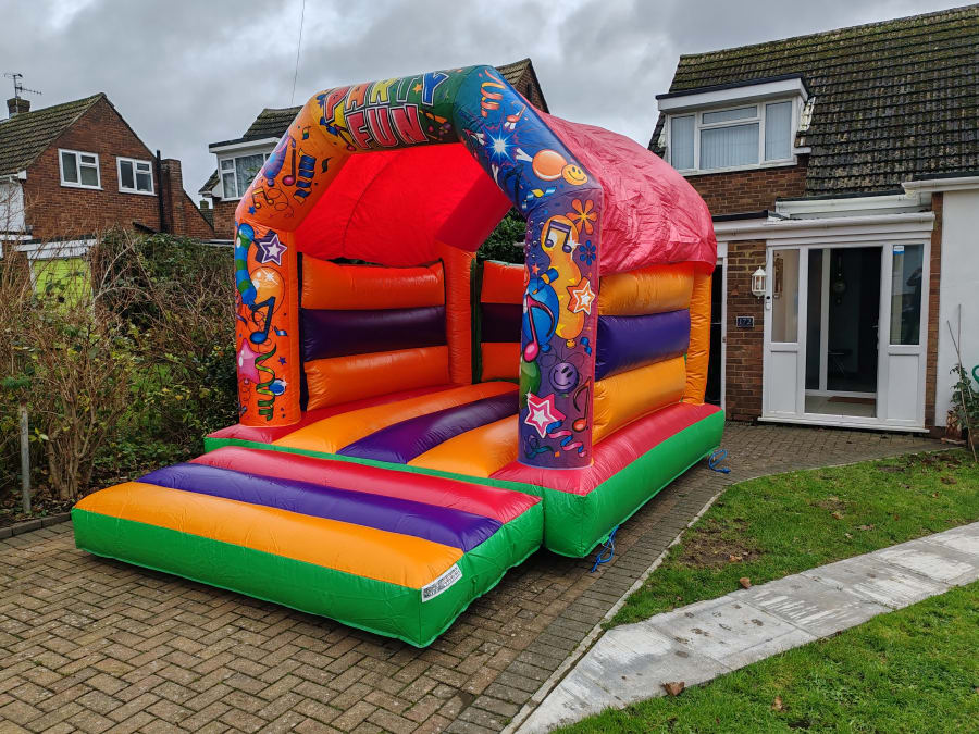 Included with this bouncy castle are padded mats for the front of the inflatable, a blower/fan, ground stakes for outside hires and a 25 meter outdoor power cable. Please ensure we have 30 minutes either side of your allotted time for us to set up and pack away the equipment safely, visit our FAQs section for full details.