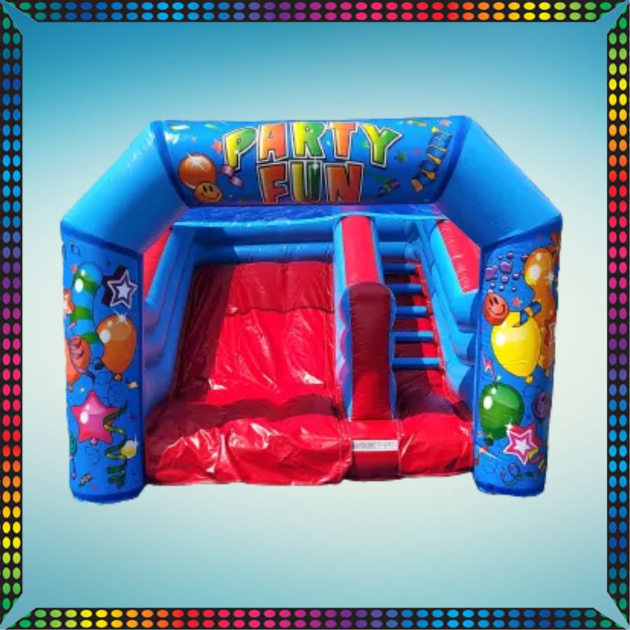 Are you having a party or celebration? What about a birthday party? Why not make the Celebrations even better with our celebration bouncy slide!. With it's fun party artwork it will bring a smile to anyones face. Kids love climbing the steps to the top of the inflatable slide and then slide down on the other side.