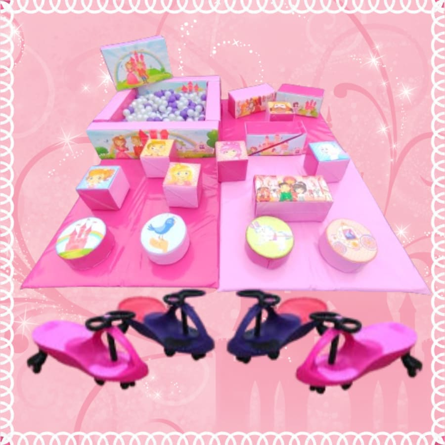 This pretty little pink soft play package will immediately catch the attention of any little one, having them clambering, playing and stacking for as long as you'll let them! The artwork on the different shaped blocks from the princess soft play set is charming and features princesses and fairy tale castles to really capture the imagination. The soft mats mean that even the most accident prone child will have a soft landing and be able to play in safety. The addition of four didicars will really make for a great party. Add to that the princess ball pit and you'll be dragging the children away at the end of the party!