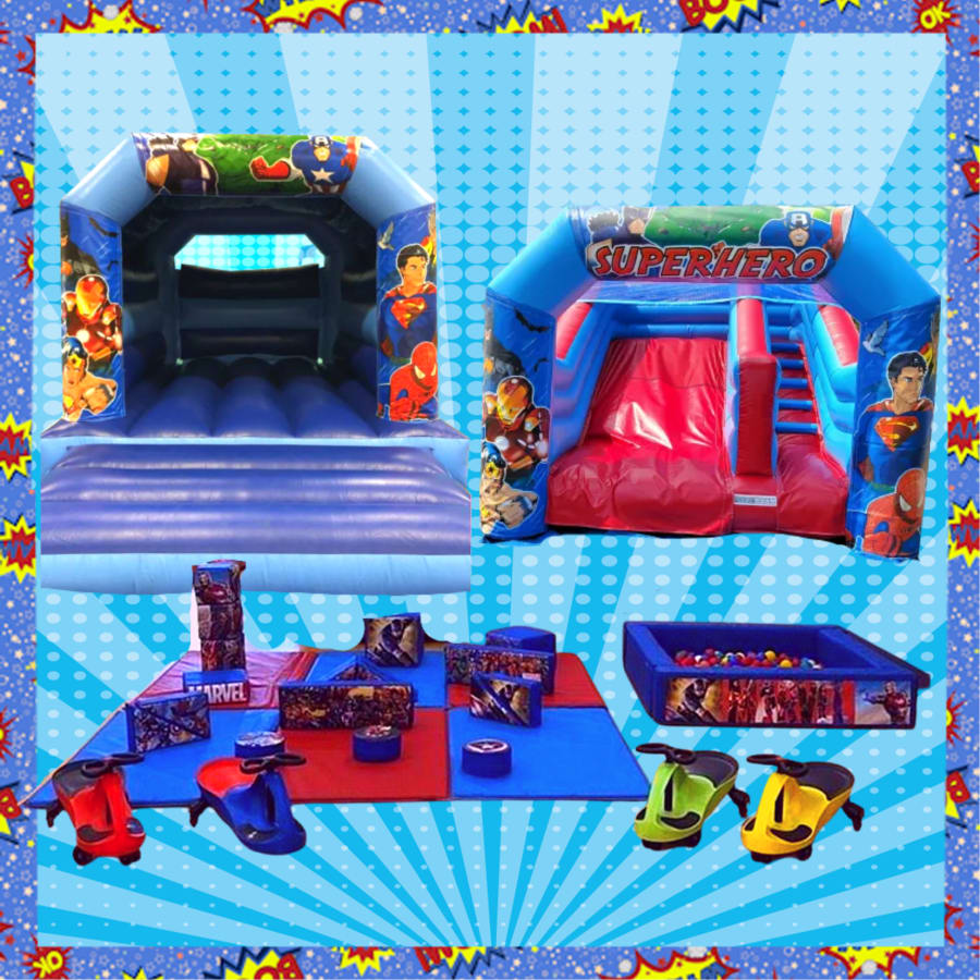 The blue inflatables has superhero artwork with all your favourite characters. And the softplay with ball pit will entertain the younger children.