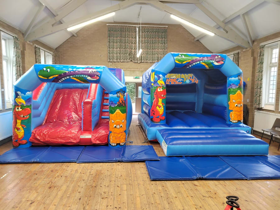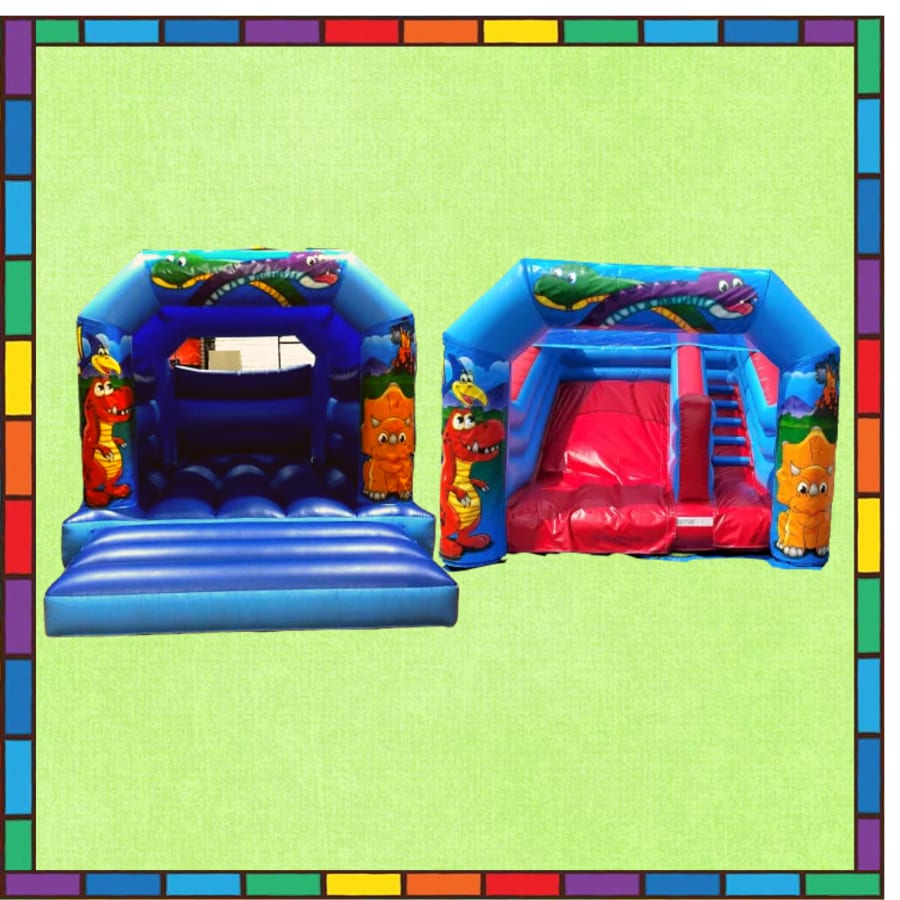 The dinosaur bounce and slide package contains the Dinosaur Bouncy Castleand the Dinosaur Inflatable Slide creating a fun and exciting package.