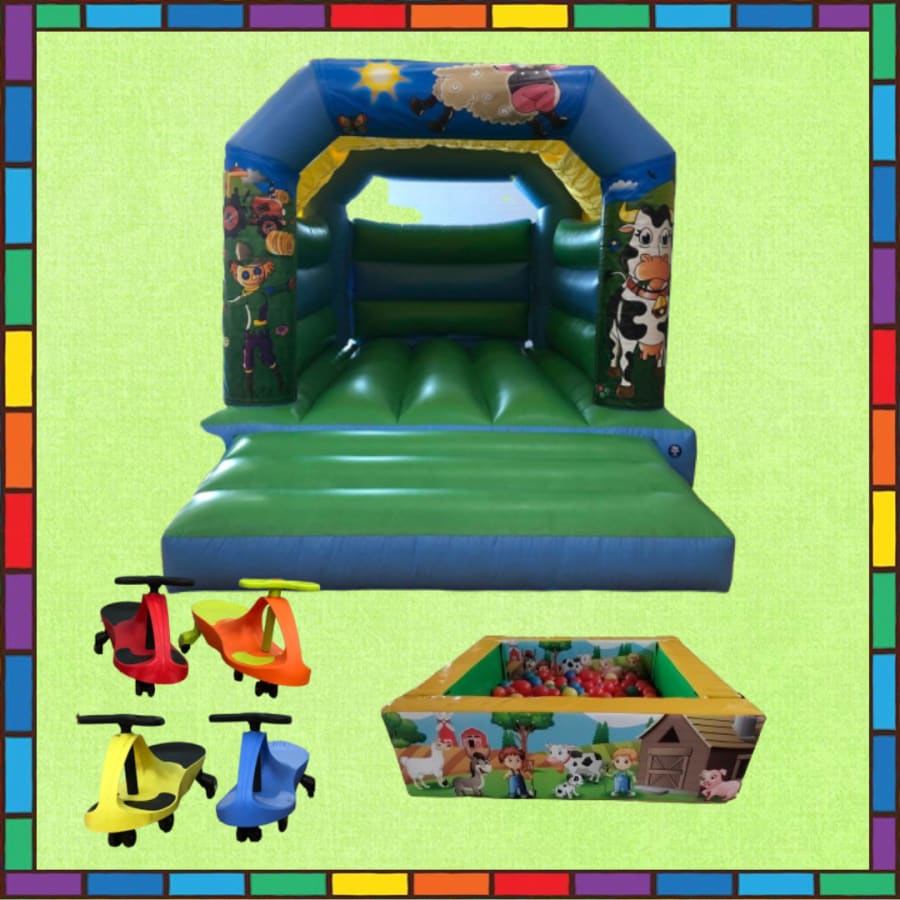 This may be our budget farmyard party package, but it is still packed with fun! It includes a bouncy castle of your choice, it could even be a Small Farmyard Combi Castle, Farmyard Bouncy Castle or Farmyard Combi Castle Blue & Red (+£15) - just choose from the options when you book online. You also get a farmyard ball pit decorated with lots of different animals and it is also supplied with plenty of multicoloured balls! Plus to top this package off, you also get 4 super fun didicars to keep everyone entertained through the party.