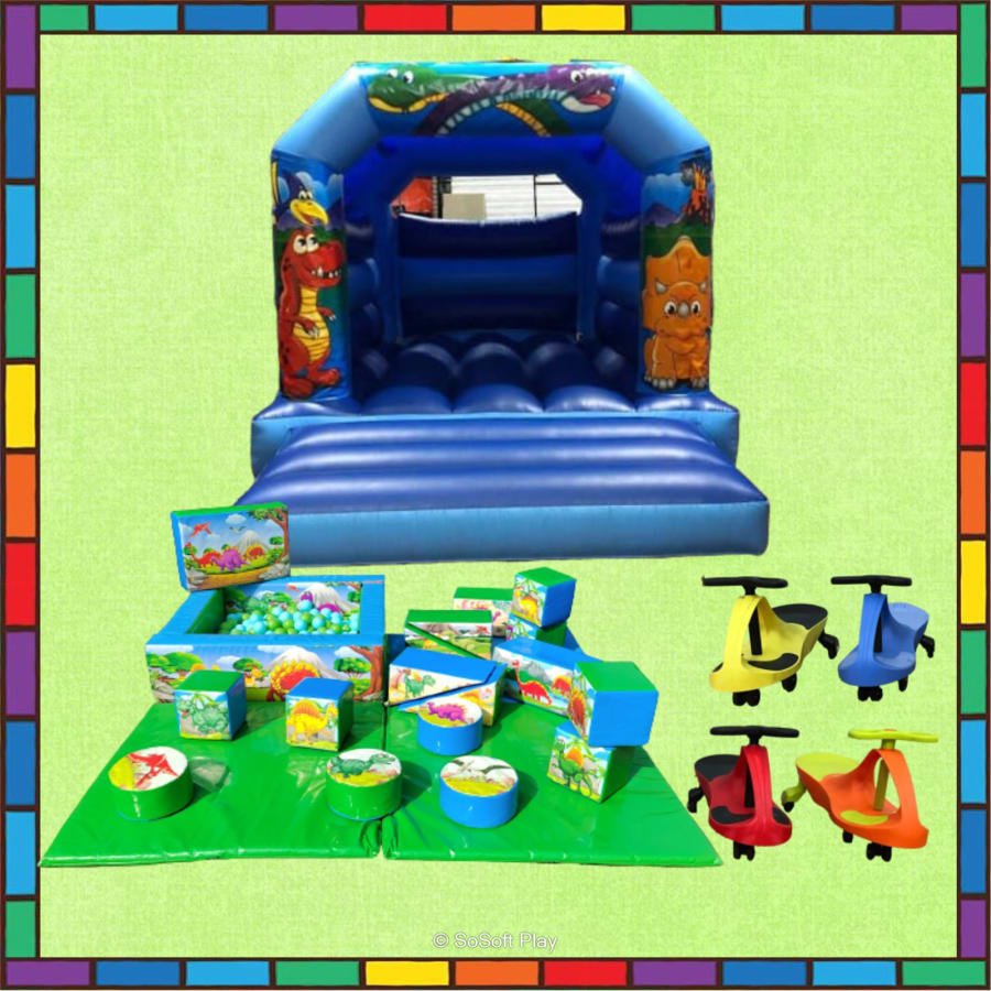 Do your kids love dinosaurs? Then they will love this dinosaur Package, included is the Dinosaur Bouncy Castle, Dinosaur Ball Pit,Dinosaur Soft Play Set and Didicars x 4 everything to make your dinosaur theme party a roaring success!