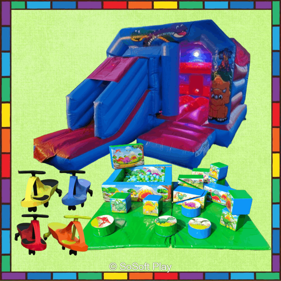 This package is brilliant for birthdays, nursery celebrations and family garden parties. The soft play and ball pit keep the littlest explorers safe and entertained while the disco bouncy castle sends budding dinos into happy hops.