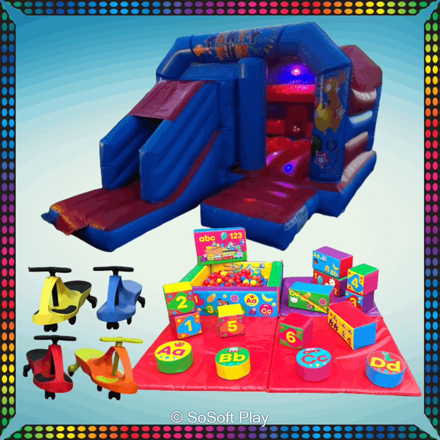 - Party soft play: Cushioned shapes and obstacles designed for toddlers and preschoolers to climb, crawl, and explore safely.
